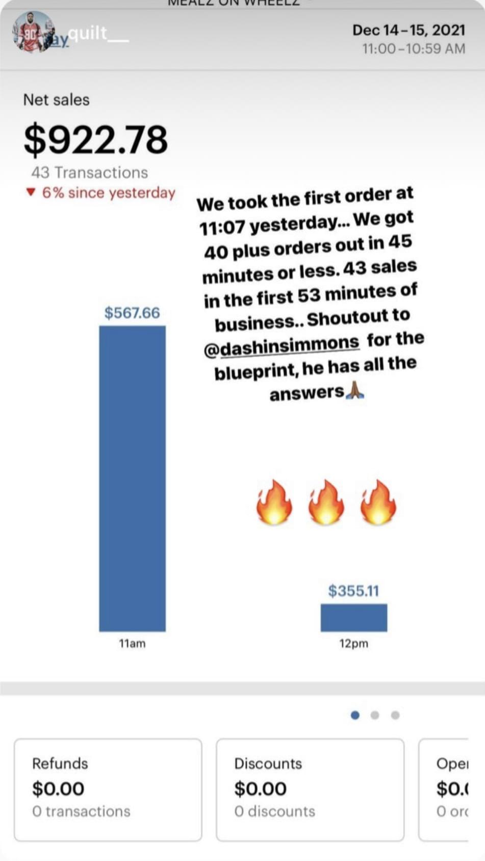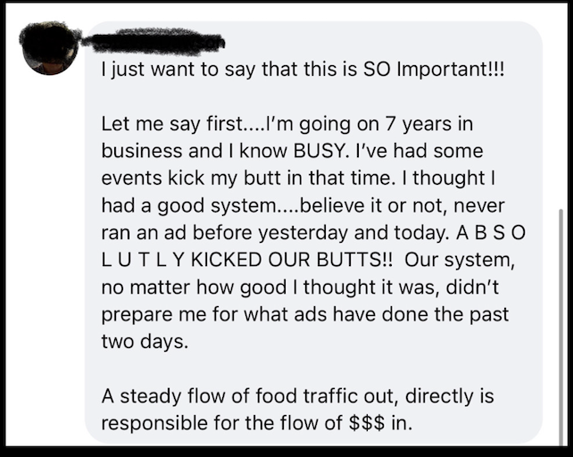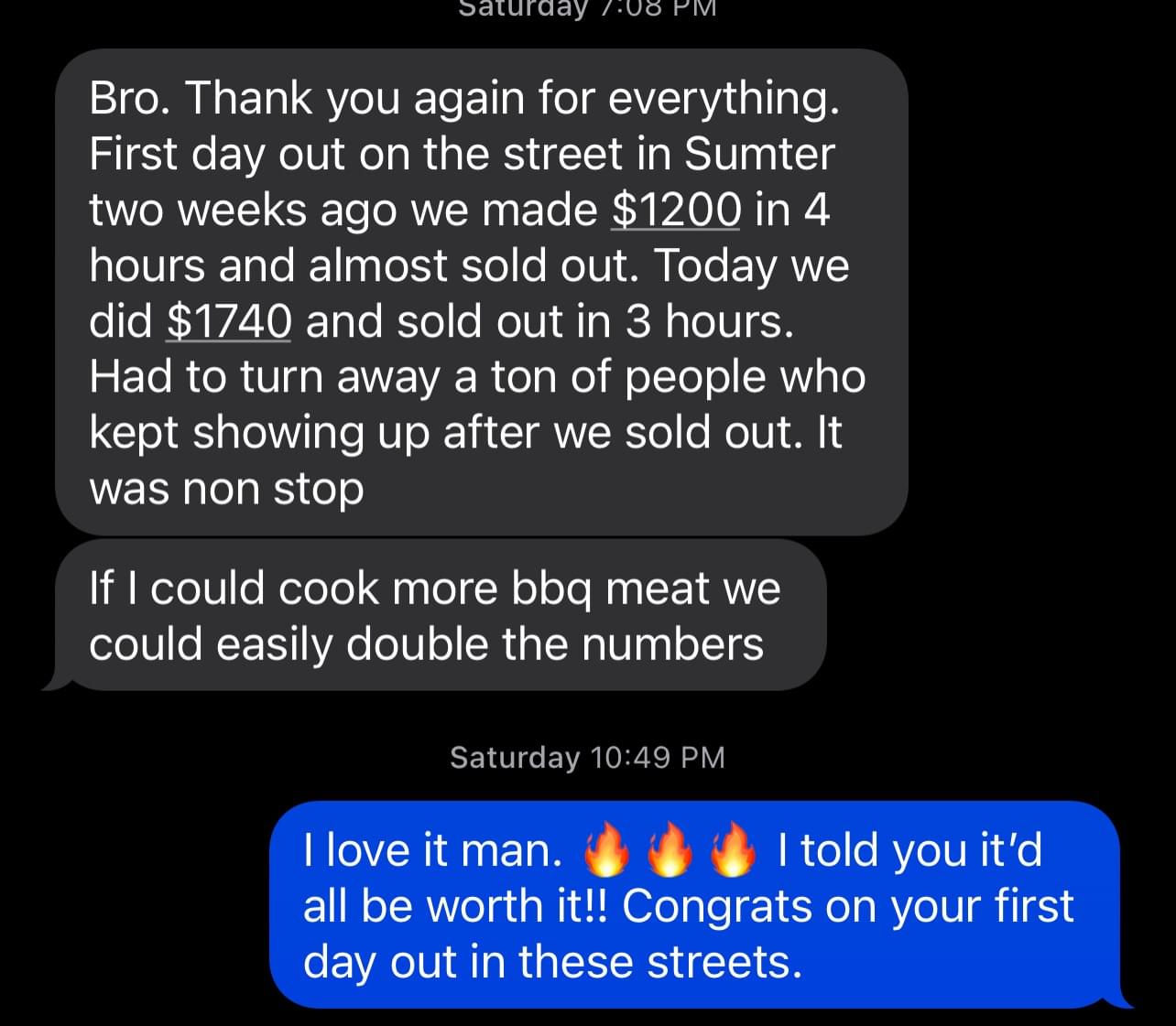 After doing it the way everyone else told me to do it. I started doing what I knew how to do best. The very next day we made $767. After that $1,200. That number kept growing until we had 2 restaurants and 2 Food Trucks grossing over 7 Figures In Sales per year!Â